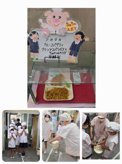 給食室にやって来た当番の子ども達は、展示食にある発酵乳を見て、「やったあ!○クルト」と大喜び(*^^*)