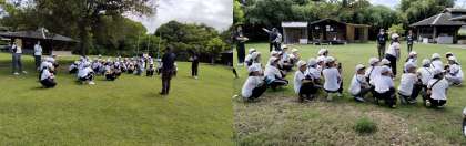 クラスごとにキャンプリーダーの説明をよく聞き、火おこしにチャレンジです。