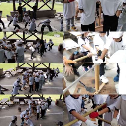 コンロのない野外では、自分達で力を合わせ火おこしをしなければなりません。