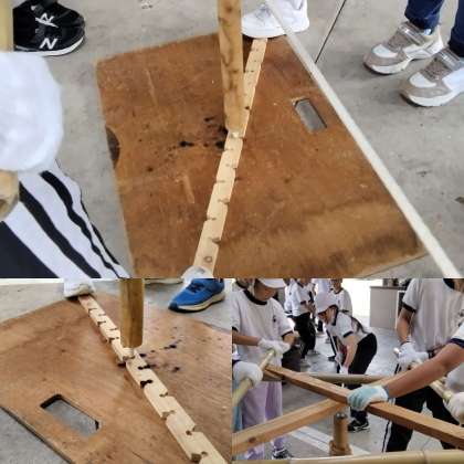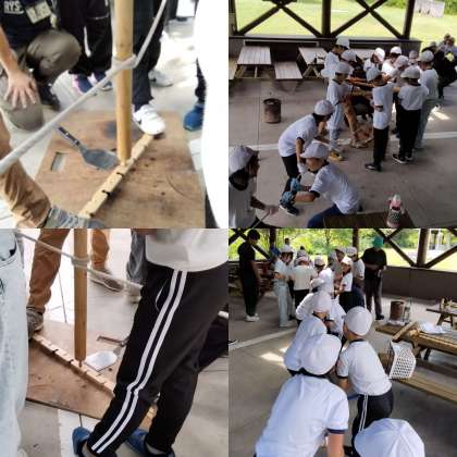 クラスごとにキャンプリーダーの説明をよく聞き、火おこしにチャレンジです。