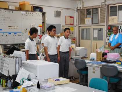 8月6日(水)から3日間、本校の卒業生2名を含む瓜破中学校の2年生3名が「職場体験学習」として本校に来ます。「職場体験学習」とは、中学校卒業後さまざまな進路はありますが、いずれ何らかの仕事に就いて社会に参加していく自分を見つめるキャリア教育の取り組みです。今日は、正門での挨拶指導・教職員への挨拶・1年生の授業見学と給食への参加、簡単な作業に取り組みました。この3日間で正しい職業観や労働観を身に付け、これからの自分自身を考える機会になれば最高です。