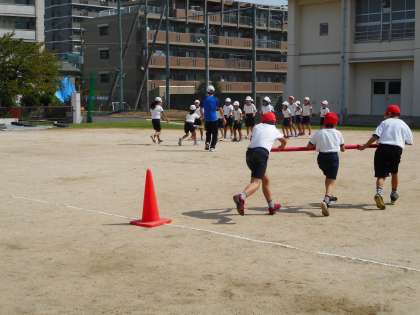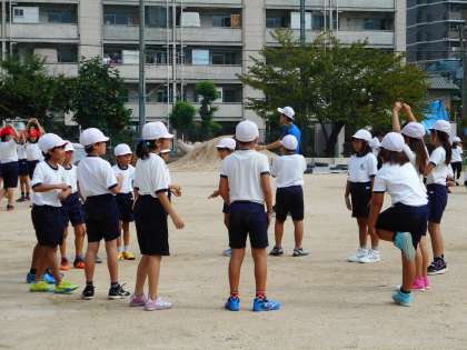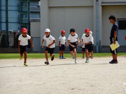 9月9日(金)1.2限、3.4年生の合同練習。練習場所を体育館から運動場に移しての練習が開始。朝夕少し涼しくなってきましたが、太陽が照りつける運動場は暑いです。隊形に合わせて立ち位置の確認など、運動場の広さに応じた団体演技の練習が進められています。その後は、学年別に分かれての練習。3年生は個人競技の徒競走、4年生は赤・白組対抗の団体競技の練習です。来週の週間天気予報は、傘マーク(雨)の日が多く、運動場での練習が十分できるか気がかりです。