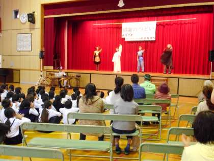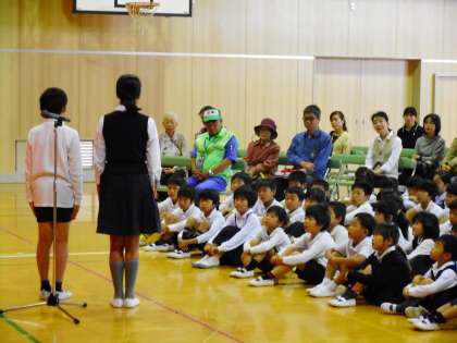 10月15日(土)、2学期最初の土曜授業を行いました。「感謝の集い」と「芸術鑑賞会」が主な活動内容です。「感謝の集い」は、見守り隊の皆さん、図書ボランティアの皆さんをお招きし、安心・安全な登下校や読み聞かせ・図書館開放にお世話いただいていることに感謝の気持ちを伝える集いです。代表委員2人がお礼の言葉を述べ、児童全員で「いつもありがとうございます。これからもよろしくお願いします」と感謝の気持ちを伝えました。その後は、一緒に芸術(ダンスと劇)を鑑賞していただきました。