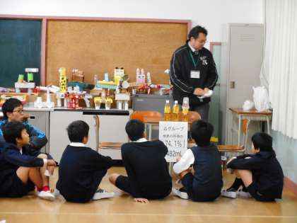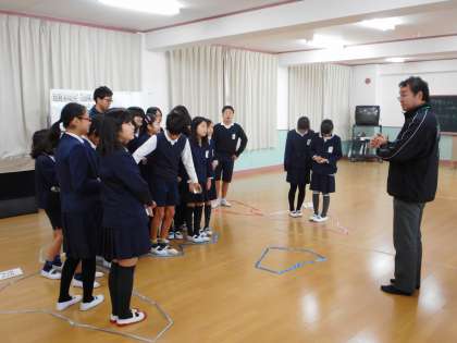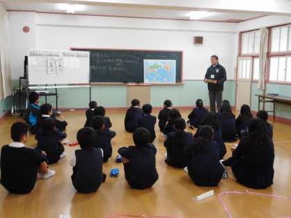 12月9日(金)1限、6年2組総合的な学習の時間。指導者は担任外の先生。本「世界がもし100人の村だったら」を題材に、100人を2組の児童数22人に置き換えて体験的な学習が進んでいきます。「子ども・大人・お年寄りの割合」「人口密度が高い大陸」など、22名がグループごとに分かれた人数の多い少ないで驚きの声があがる場面も。世界の中で起こっているさまざまな問題、日本の現状とのちがいなど、グローバルな視点で社会問題を知る・考える学習となりました。これからの社会科の学びにつながっていきます。