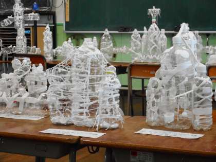 4年生 ペットボトルを加工し、紙ねんどでデコレーションした作品