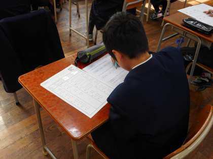 児童たちは、慣れない冊子の調査用紙や別紙の解答用紙に戸惑いながらも真剣に取り組んでいました。結果の個人データは2月末、学校に提供される予定です。