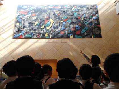 2月22日(水)朝、肌寒さを感じる中、2年生が社会見学に出発します。見学先は肥後橋にある国立国際美術館と大阪市立科学館です。美術館では、大きな展示作品の前で学芸員さんとギャラリートークをしました。各展示を一通り鑑賞した後、一番お気に入りの作品を選びその理由をワークシートに書き込みます。その後、2人組になり、自分の書いた文章を紹介し、どの作品かを当てあいました。児童たちが熱心に取り組む姿に学芸員さんも感心しておられました。一人一人が「今日の」1点を見つけて、科学館へ移動。昼食・見学後、帰校しました。