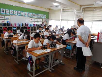 5限は高学年での水泳学習。準備運動の後、25mの泳力テスト。みんな、クロールで頑張って泳いでいました。25m泳げたかは、各家庭で尋ねてみてください。