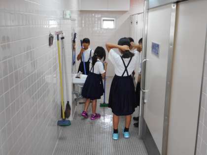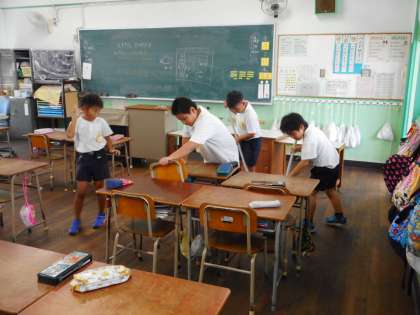 決まった時間で区切られた学校生活。子どもたちは、遊びとそうじの切り替えを上手にしています。