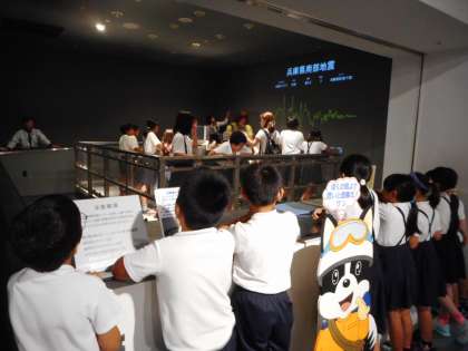 9月8日(金)午前、社会見学で阿倍野防災センターへ出発。阿倍野防災センターは体験型の防災学習施設。地震発生後の火災を未然に防止する体験や煙の中を避難する体験、消火器での消化体験や119番通報体験などもあります。また、震度7の地震を体験するコーナーも。