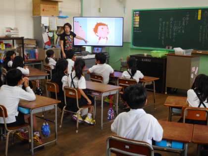 10月4日(水)、全学年「英語の短時間学習」のスタート。毎週水・金曜日の8時40分〜55分の15分間は、DVDや絵本などの視聴覚教材を活用し英語に触れる時間。来年度より、3年生以上に外国語活動(英語)が導入されることにともなう取り組みの一環です。