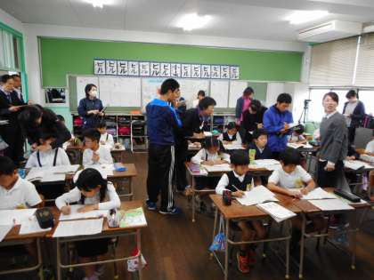6限、5年1組社会科の授業。グラフの資料を導入に、自動車の海外生産が増えている理由を考えました。ともに児童たちは、熱心に取り組んでいました。放課後には、研究協議を行い論議を深めました。より良い授業づくりに向けて日々取り組みを進めています。