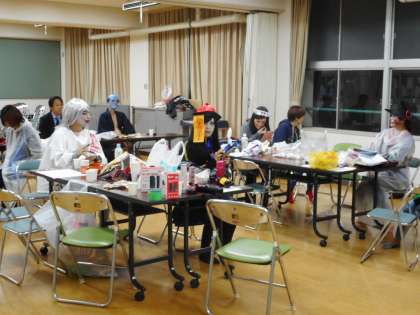 10月28日(土)、最初の出し物は、区役所CAT隊の皆さんの班対抗防災○×クイズ大会。クイズ形式でトラブルを回避する方法を学びました。その後は、夕食の「特製コロッケカレー」をいただき、夕食後はゲーム大会と恒例の肝だめしを楽しみました。【写真右:肝だめしの控室】お迎えの保護者とともに帰宅し「一泊イベント」は終了。