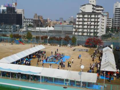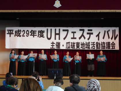 11月5日(日)、深まりゆく秋を感じる中、瓜破東地域活動協議会主催「UHフェスティバル」が本校で盛大に開催されました。講堂では、生涯学習ルームのコーラスのオープニングに始まり、数々の出し物が予定されています。運動場では、各種団体が模擬店を出店し、多くの方々でにぎわっています。当日参加していた本校の子どもたちは、地域の方々との交流を通して、楽しい一時を過ごしていました。