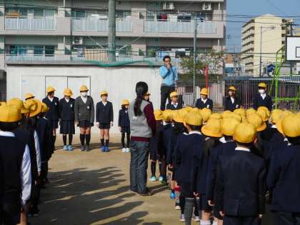 3月12日(月)、全学年がそろう「児童朝会」は今日が最後です。保健委員会からは、「ハンカチ・はな紙・つめ・歯みがき・洗顔」についての清潔しらべの結果報告がありました。また、あいさつ運動に取り組んだ後期代表委員会からは、「来年度も引き続き取り組みを進めましょう」とあいさつがありました。みんなで歌う最後の校歌が、澄みきった青空に響いていました。