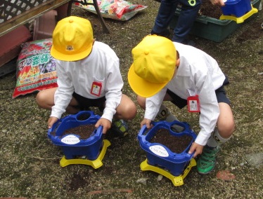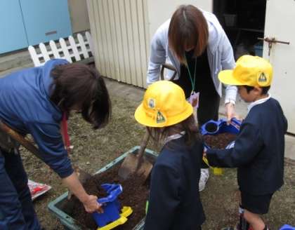 地面でトントンして土をならしました。「ふかふかにできたよ!」