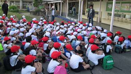 1〜3年、学校に到着。「ちょっと疲れた〜。けど、楽しかった〜!!」