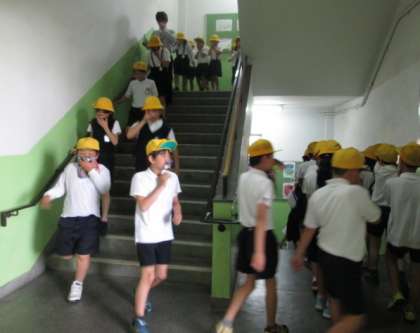 「家庭科室から出火」という設定で、避難訓練を行いました。