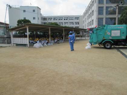 6月9日(月)4年生がパッカー車の学習を行いました。