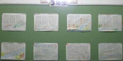 子どもたちは、様々な教科学習で力を発揮しています。その一部を校舎内の各所や教室内に掲示しています。どの作品も、一人一人の個性があふれる力作です。ご来校されたとき、ご自分のお子さまのものはもちろん、他の子どもたちのがんばりも感じてあげてください!