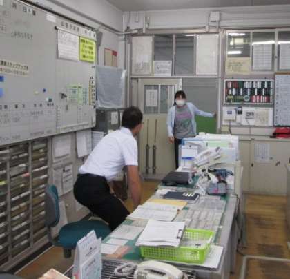 ↑ 不審者侵入に気付いた教職員が、職員室に駆け込んできました。
