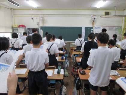 5限、6年1組国語科の研究授業。教材は「風切るつばさ」。音読した後、この時間のめあてについて考えていきます。本校では、昨年度に引き続き国語科を通して「すすんで文章に親しみ、確かな読みができる子どもの育成」をめざして取り組みを進めています。
