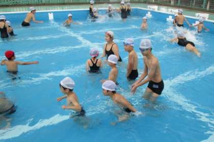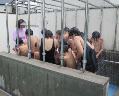 ↑1年生は小学校のプールが初めて。シャワーも6年生が一緒だと安心!