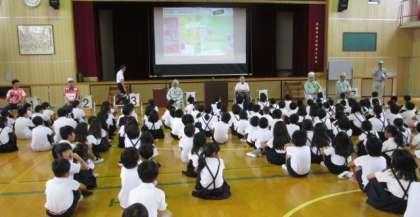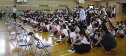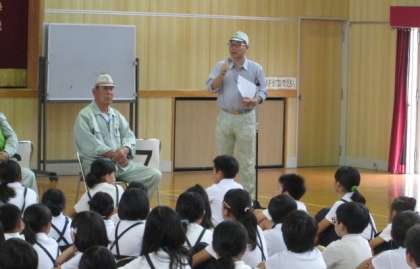 いよいよ訓練開始。教頭先生から防災訓練の目的を話してもらいました。