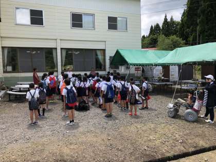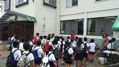 気持ちをひきしめて、開舎式を行いました。いよいよハチ高原での活動のスタートです。3日間お世話になる宿舎の方から、ハチ高原の自然のことや、みんなで協力して生活をすることの大切さについて、教えていただきました。