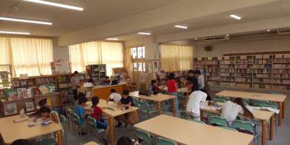 一方、エアコンで快適な図書館では、読書をする子ども、