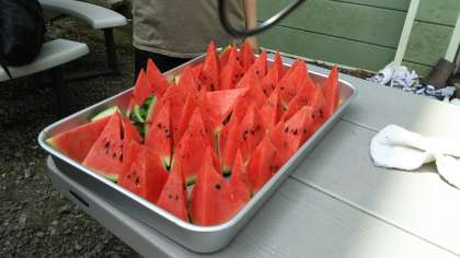 宿舎に着くと、みずみずしくておいしそうなスイカが待っていました。