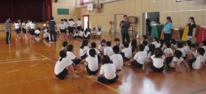 本番で使う道具を手に持って動きや隊形の確認。団体競技に向けて、どのように作戦をたてるか…。子どもたちも教員も真剣に取り組んでいます。