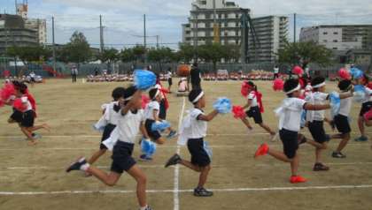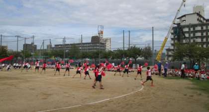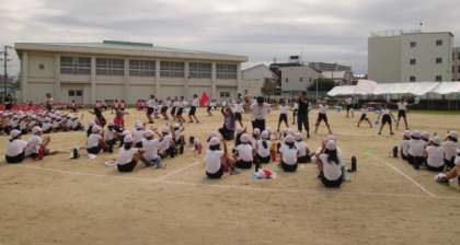 応援団の入場、赤・白それぞれの応援合戦を行って、今日の全体練習を終えました。