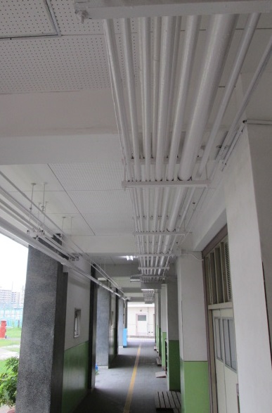東館1階廊下天井パイプ塗装Part5