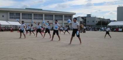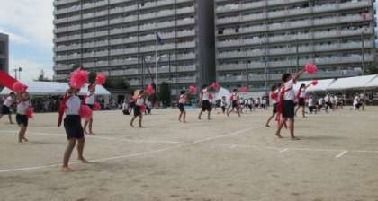 朝の応援合戦。日々練習を重ねてきました。とても力強い応援でした。