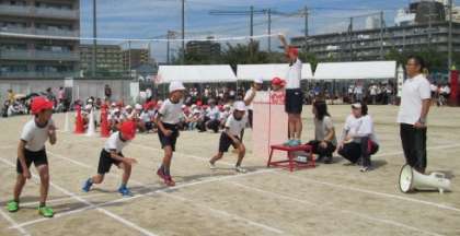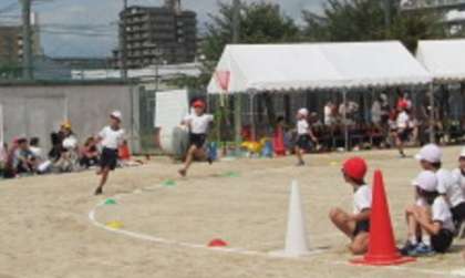 4年生の個人走です。距離は90m、3年生より少し伸びました。カーブの走り方も、様になっています。