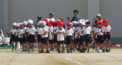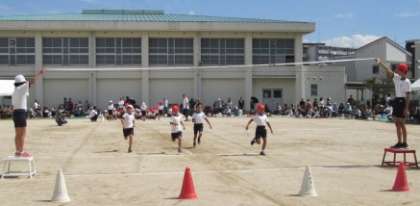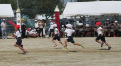 1年生の個人走。初めての個人競技ということもあってか、入場後も緊張の面持ち。でも、出発の合図の後は、ゴールに向かって一直線。気持ちよく走り抜けました。