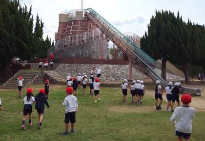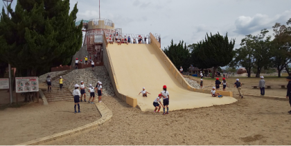 園内には、体を使って遊ぶ施設がたくさんです。子どもたちは、時間が経つのも忘れて、滑り台などの遊具を使ったり、持参した長縄やボールなどを使ったりして遊びました。いっぱい遊んだ後は、楽しみなお弁当タイム。さわやかな自然の中で食べるお弁当の味は、格別でした!
