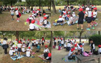 たくさん歩いて、やっとお待ちかねのお弁当!みんなでおいしくいただき、食べ終わった後、秋探しをして帰りました!!「あ〜っ、楽しかった!!!」