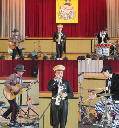 集いの後は芸術鑑賞。「ピアニカの魔術師」の方々です。