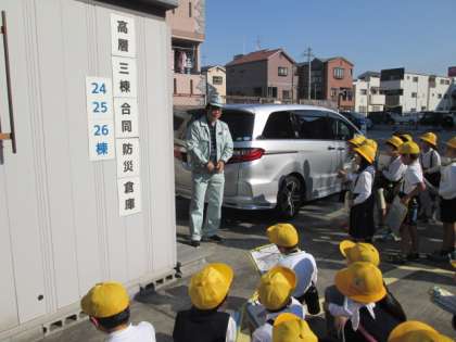 本日2年生は、地域の防災倉庫や集会所の見学に行きました。