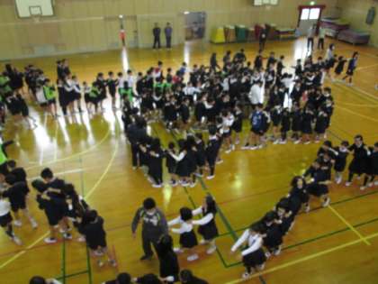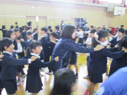 今日の児童集会は「じゃんけん列車」です。