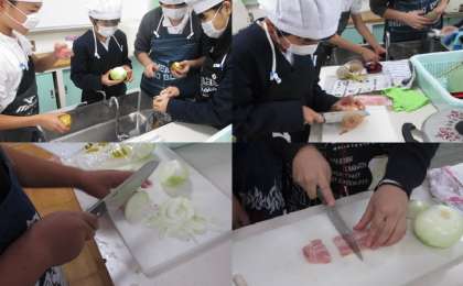 家庭科の学習で、調理実習を行いました。ジャーマンポテトです。