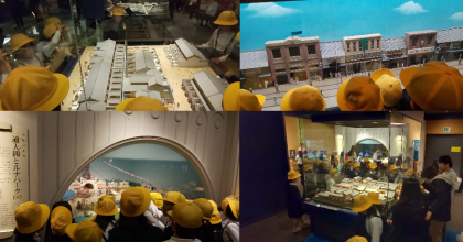いよいよ館内での見学です。9階では「江戸時代の大坂」、8階では「明治・大正・昭和の大阪」の街並みにタイムスリップしました。そして、それぞれの時代の人々のくらしにふれることができました。昭和の頃の道具のコーナーになると、「知ってる!」という声も聞かれました。見学を通して、道具にはその時代の人々の様々な知恵がつまっているということに気付くことができました。
