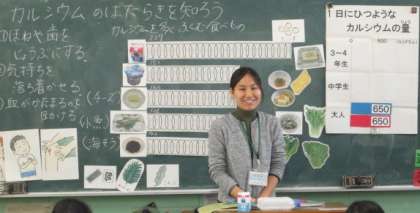 私たちの体にとって、とても大切な「カルシウム」。どんな働きをするのか、どんな食べ物にたくさん含まれているのか学習しました。一日に必要なカルシウムの量が大人よりも3〜4年生の方が多いこと、中学生男子になると1000mgも必要なことを知ると、「え〜っ!」「すごいっ!」と声が上がっていました。