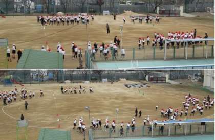 今日も、20分休憩時にかけ足運動を行いました。学年ごとにまとまって所定の位置につき、草津先生の合図のもと準備運動を行い、音楽に合わせて走り始め、少したって自分のペースで走り続けます。1・2年で学級・学年休業が決まってしまい、その学級は参加を見送りましたが、4年2組は休業が終わり、本日初参加です。