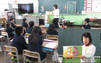 今朝は、3学期最初の読み聞かせです。1年1・2組で行っていただきました。朝・昼の図書館開放は、先週火曜日から行っていただいています。