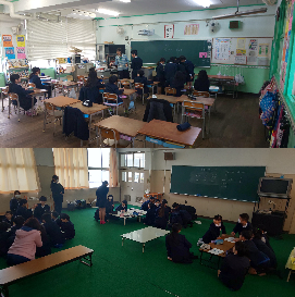 今日の2時間目、「地域子ども会」を行いました。4月に入学する新1年生の子どもたちを加え、5年生を中心とした新しい登校班を編成しました。