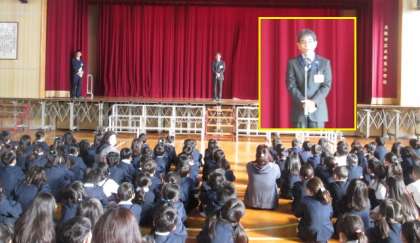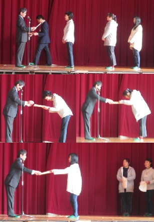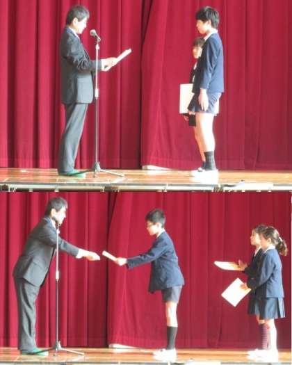 区長さんから表彰状が渡されます。緊張の面持ちながらも、表情はどこか晴れやかです。区長さんから「読書はたくさんの経験をさせてくれる。読書をたくさんしてほしい。また来年も表彰したい。」という話がありました。