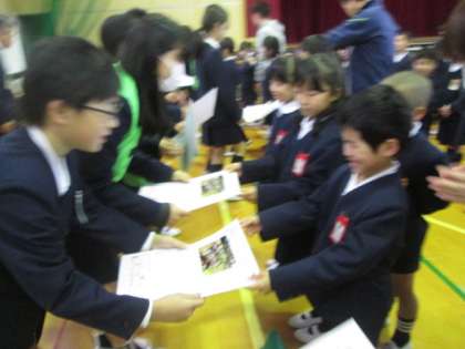 集会委員の皆さん、そして6年生の皆さん、1年間ごくろうさまでした。とっても楽しい木曜日の朝をありがとう!!